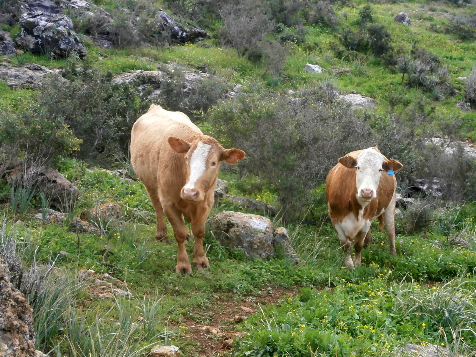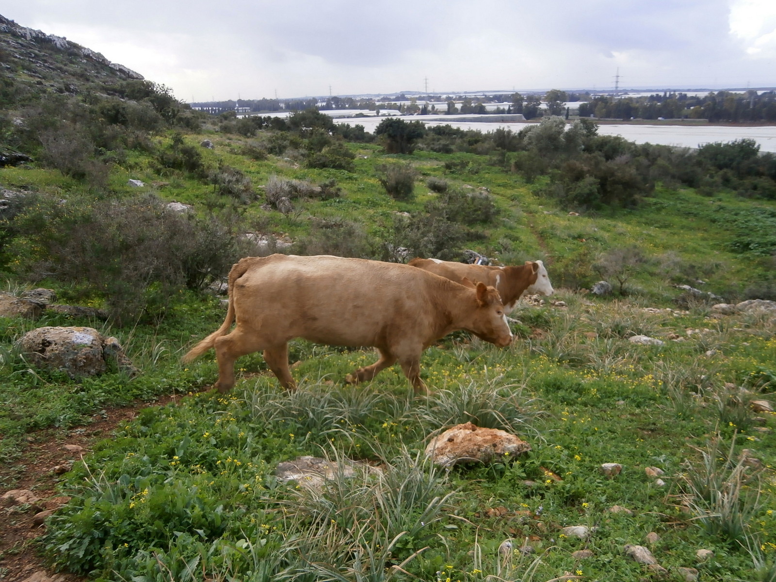 К шмурат нахаль Меарот я дошла за 4 часа. А это всего километров 7-8 от начала маршрута. Швиль оказался не такой лёгкий, как думала. То есть он нетрудный, но есть много скалистых участков, по которым продвигаешься очень медленно, особенно во время дождя. По пути мне встретились наши любимые коровки: