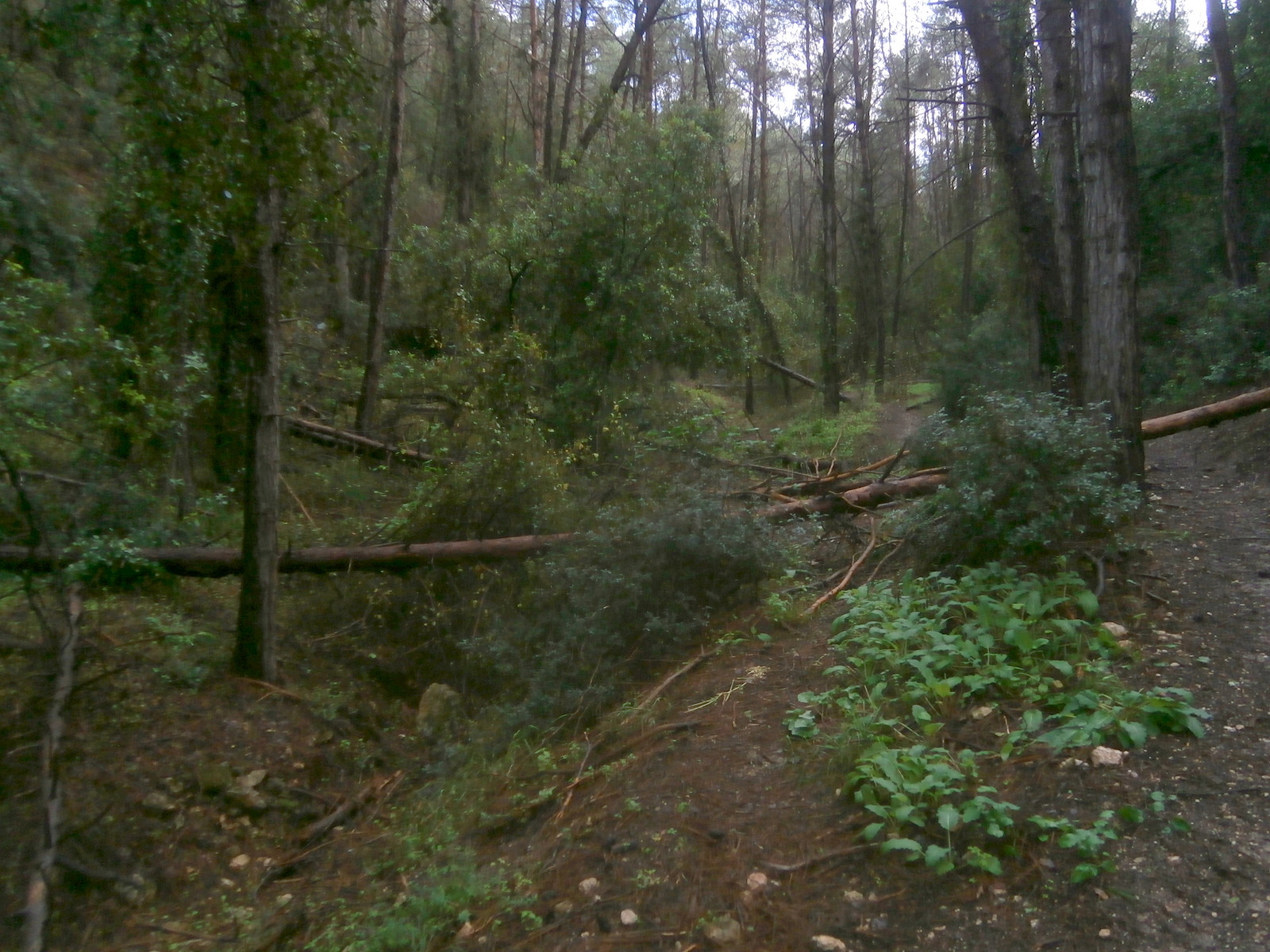По тропе потекли ручейки, кое-где образуя маленькие водопадики. А я подумала, что будь дождь посильнее, могло бы и смыть селевым потоком. Эк, размечталась! Такое здесь вряд ли не случается.