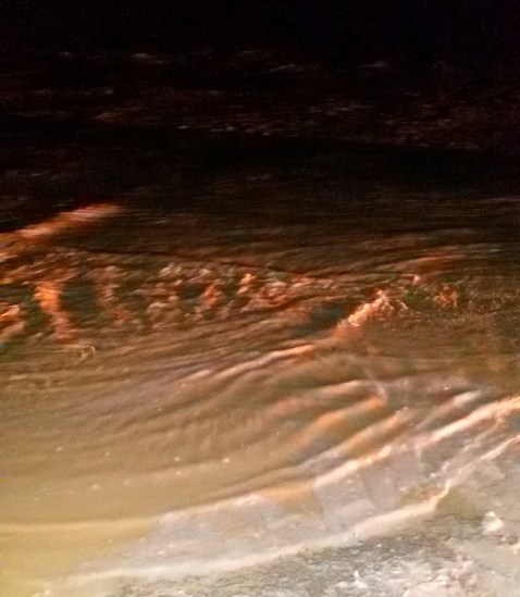 Фотография текущего ручья в темноте получилась непонятная, можно даже загадывать загадку: «Угадай, что это»: