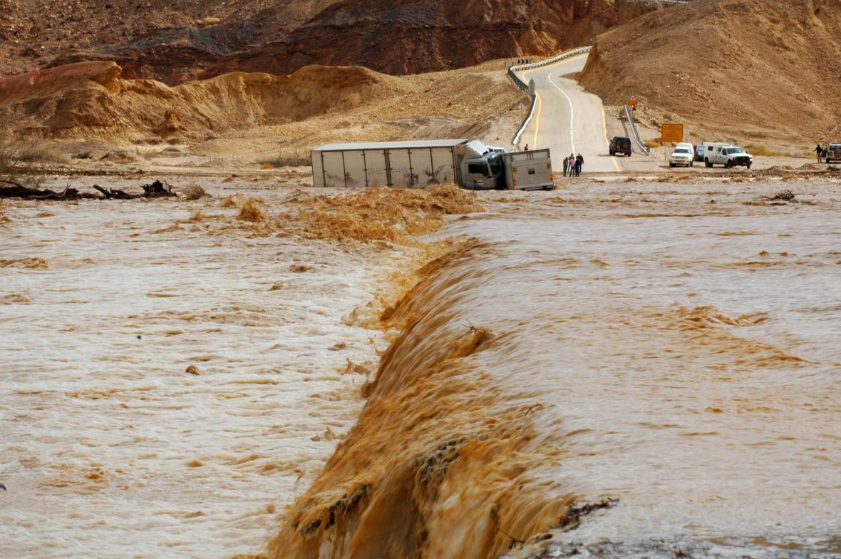 И вот не так давно в Израиле появилось довольно массовое хобби: «Охота за наводнениями» (ציידי שטפונות). С наступлением зимы, как только начинаются первые дожди, такие «охотники» находятся в состоянии повышенной готовности, они готовы в любой момент бросить работу, семью и дела и помчаться в пустыню, чтобы в очередной раз убедиться в силе природы и увидеть захватывающее зрелище ревущих потоков воды. Особенная удача для «охотников за наводнениями» и их главная цель — это успеть прибыть на место и не упустить тот момент, когда сухое доселе русло наполняется водой. Выглядит это так (фото из интернета):