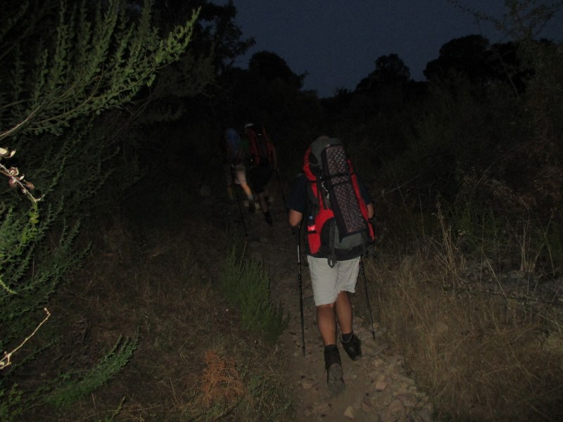Ночь провели в палатке в кемпинге (Gite d’Etape) в Калензане. Встали в 4:30 с волнением и радостью в душе одновременно. На общественной кухне обнаружили безхозный пакет с кофе, его и заварили (свой нужно экономить). Половина вчерашней пиццы, предазначенной на завтрак, оказалась негодной — до неё добрались муравьи. Пришлось начинать трек голодными, на чистом энтузиазме. Еда для завтраков (колбаска и хлеб) была уже упакована в рюкзак, и не хотелось терять время на её доставание. Решили перекусить позже, на привале.