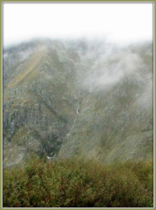Дождь шёл, не прекращаясь, и на окрестных горах в ущельях потекли потоки. Когда ветер разгонял туман, эти бурные речки и водопады были хорошо видны, и это было увлекательное зрелище!