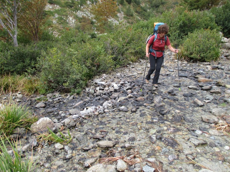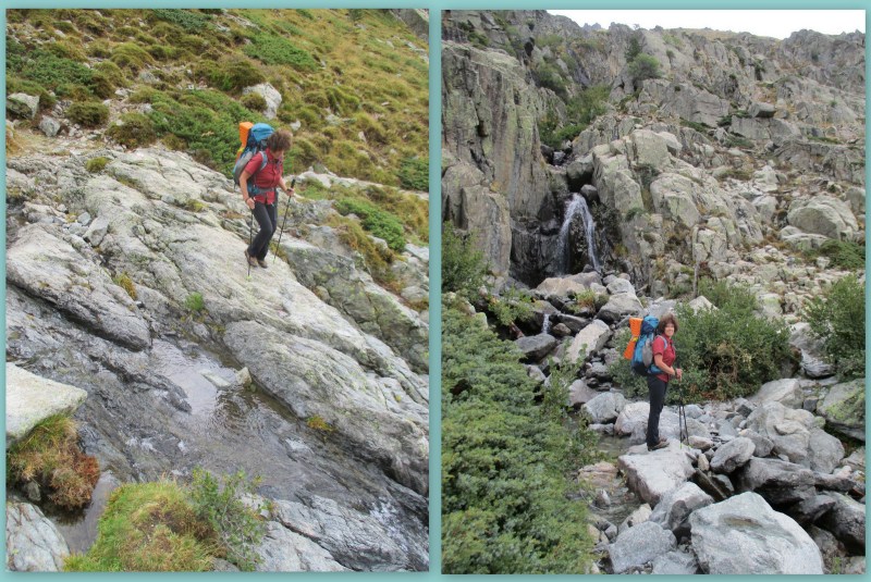 Теперь была моя очередь сделать то же самое. Саша торопил меня, он видел, что вода поднималась, прибывала прямо на глазах. Мне было страшно, но Саша вселял в меня уверенность: если бы была опасность для жизни, он не стал бы переходить эту речку. Собравшись с силами, я зашла в ревущий поток. Течение было сильное, вода уже доходила почти до груди, и тут Саша сумел схватить меня за руку и вытянуть на берег. Так благополучно завершилось третье и последнее (в тот момент мы этого ещё не знали) форсирование речек на 9-м этапе GR 20.