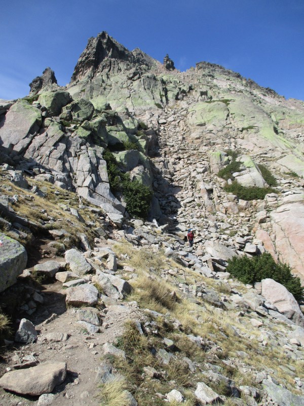 На GR 20 никогда не бывает скучно. Закончились болдеры — начался подъём. Крутой и по камням. Лёгкой жизни здесь не бывает, нечего и надеяться. Нужно идти и идти, и временами — карабкаться.
