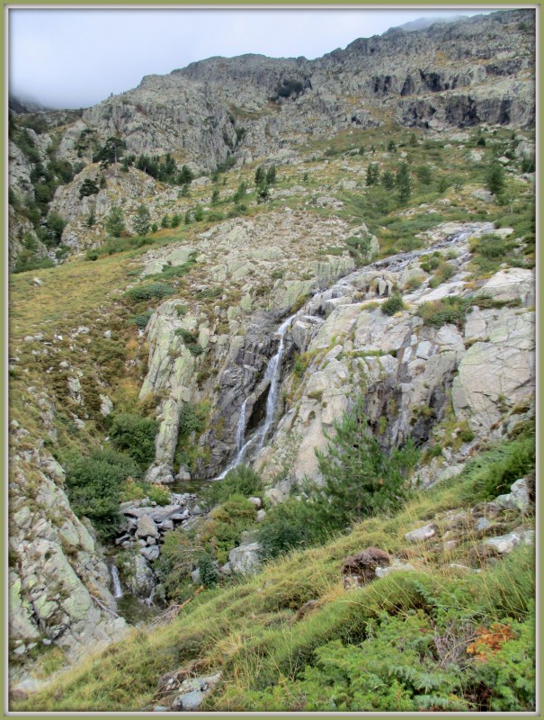 В этой точке мы могли бы отклониться от маршрута метров на 500 и сходить к водопадам Cascade du Meli. Но мы, конечно, этого не сделали. Пройти бы свой маршрут! Впереди подъём, рюкзаки тяжёлые, да и усталость начала чувствоваться. К тому же, водопадов мы уже сегодня насмотрелись вдоволь (в тот момент мы ещё не знали, что назавтра, на пути будет столько водопадов, что нам и не снилось).