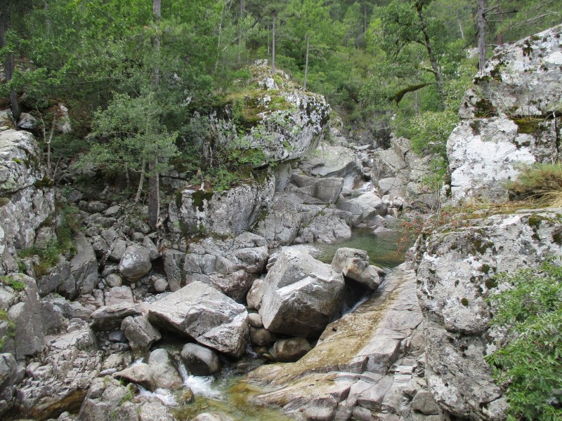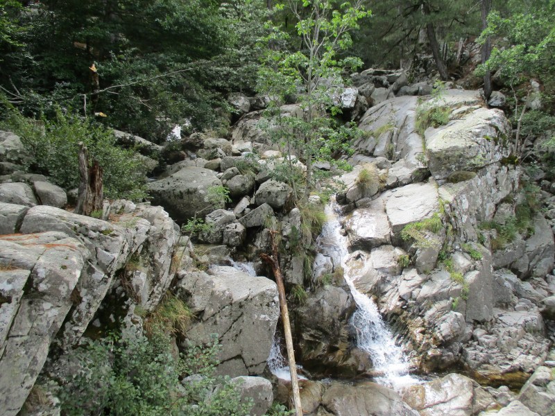 Мы перешли по мостику на правый берег реки Агнон, и теперь можно было окончательно успокоиться — теперь уж точно больше не придётся форсировать бурные речки. В прошлом году, путешествуя по Корсике, мы посетили водопады Англичан, что неподалеку, и я точно помнила, что красно-белые метки GR 20 были на правом берегу реки. Тревога отошла на задний план и сменилась умиротворением.
