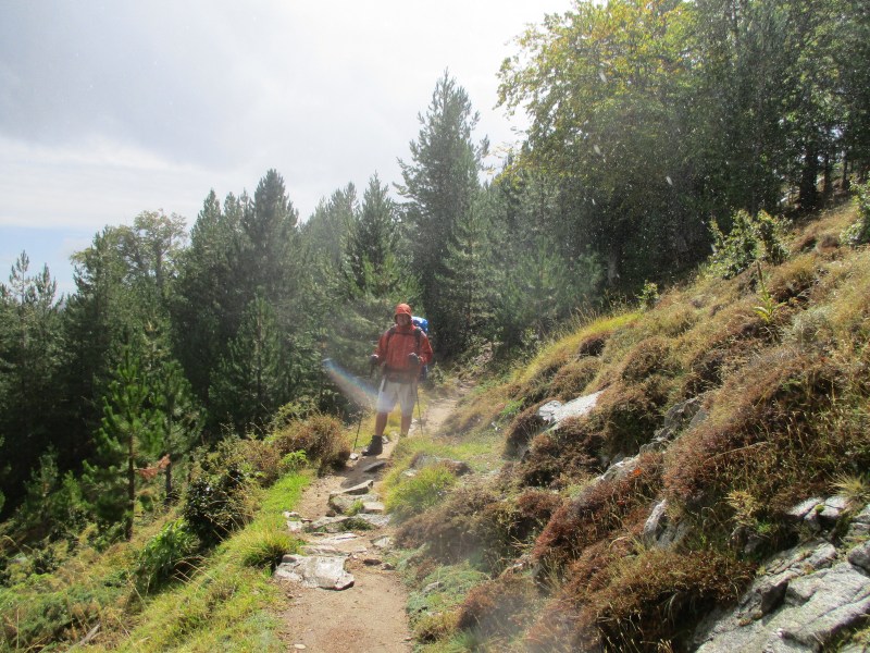 Идти по лесу приятно, подъём постепенный, тропа проложена в виде серпантина. На очередном витке нас догнали канадцы — «Хуго суперлёгкий рюкзак » и «Борода». Это был приятный сюрприз, ведь вчера мы их не видели и думали, что они не пошли в дождь из Ла Онды в Виззавону. А они — крутые, тут как тут. Прошли все ливни и водопады. Но, видимо, в Виззавоне ночевали не в рефьюже, а в другом месте, поэтому наши пути и не пересеклись. Мы уже подружились с ними (идём бок о бок 10-й день), поэтому радостно поприветствовали друг друга и перебросились парой фраз, а затем каждый пошёл дальше в своём темпе (канадцы припустили вперёд).