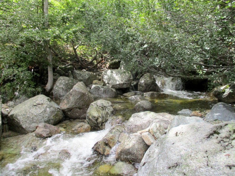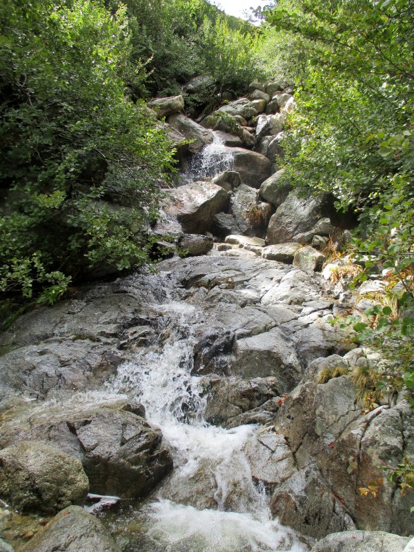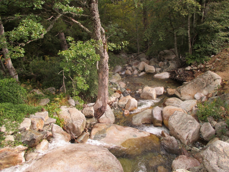 Дальше был спуск, опять прыжки с камня на камень (а сил у меня уже почти нет), и вот, наконец мы пришли в рефьюж E’Capannelle. Расположен он в красивейшем месте, в окружении леса и гор, а вдали за деревьями шумит водопад — результат дождей последних дней.
