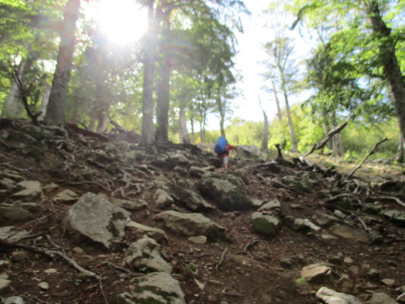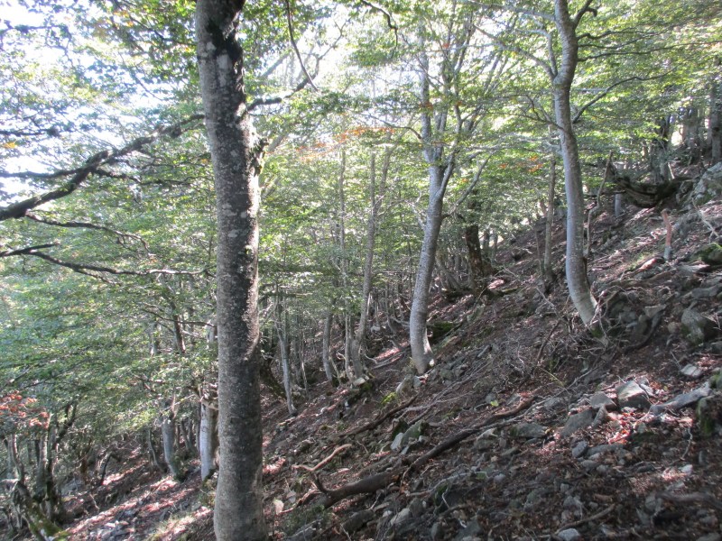 Но вот густой и высокий лес закончился, а с ним и пологая тропа, и начался довольно крутой подъём к перевалу Bocca Palmentu.