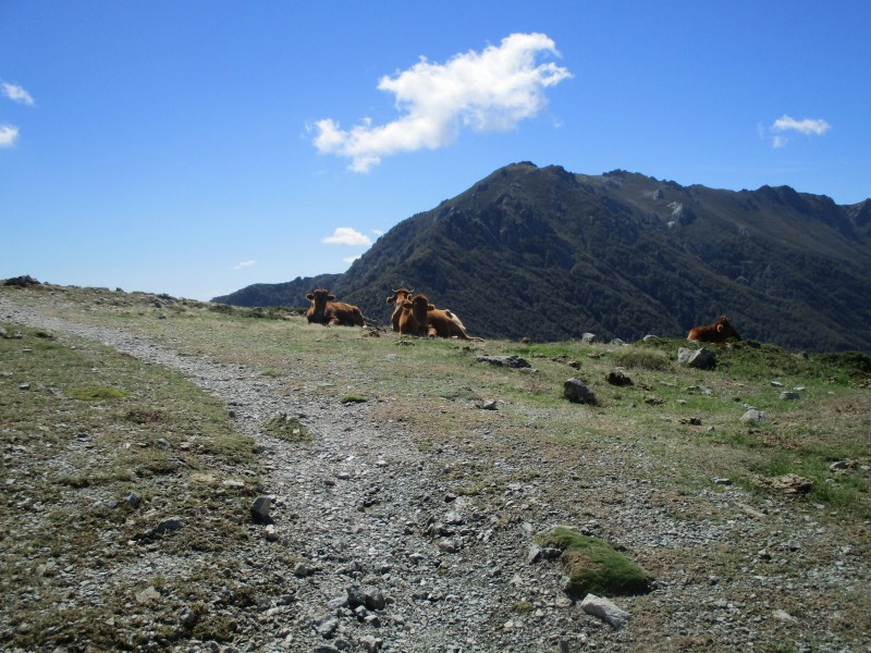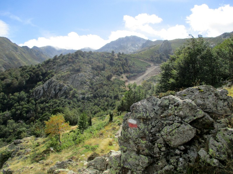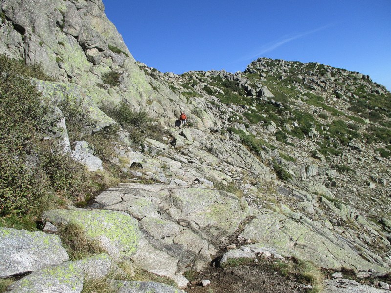 Нас же догнала парочка из Бельгии, с которыми мы идём вместе из самой Калензаны. Сегодня они начали с перевала де Верди, а это дополнительные 530 м подъёма. Молодцы, сильные! Они сказали, что по путеводителю до рефьюжа Usciolu ещё 1 ч 50 м ходьбы (для нас это означало, как минимум, часа 3). Уф! Как же далеко ещё шагать! А сил у меня почти не было. В довершение, левое колено болит на спусках, да и голень правой ноги побаливает. Иду, борясь с болью.