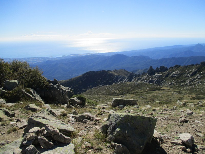 Погода ясная, и видно море, восточное побережье Корсики.