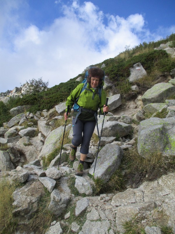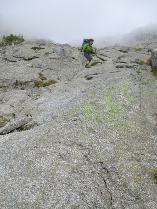 Так, по скалам, мы шли часа два с половиной. Продвигались медленно, но всё равно обогнали двух вчерашних дам не первой молодости. Одной из них было очень трудно идти, этот маршрут был ей явно не по силам, но она, надо отдать должное, старалась, боролась с трудностями и даже улыбалась при этом. Кстати, в дальнейшем мы их больше не видели, они, или сошли с тропы, или прошли  сразу 2 этапа (маловероятно).