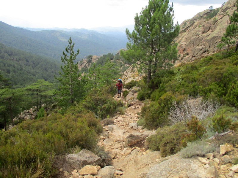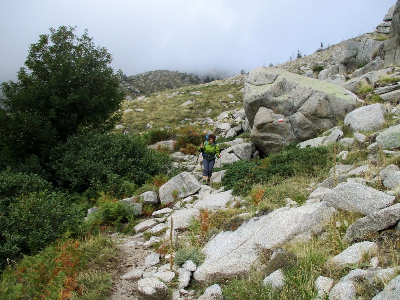 Сначала тропа шла вниз, понятное дело, по камням. На GR 20 нормальные гладкие тропы — большая редкость, но иногда они случаются, и тогда мы просто наслаждаемся ими.
