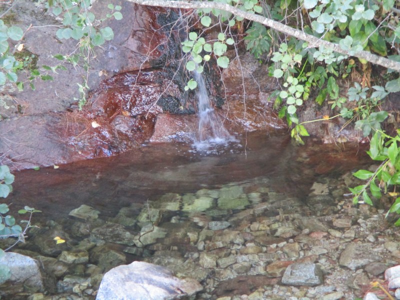 После длинного, изнуряющего (для меня, не для Саши) спуска отдохнули возле ручеёчка.
