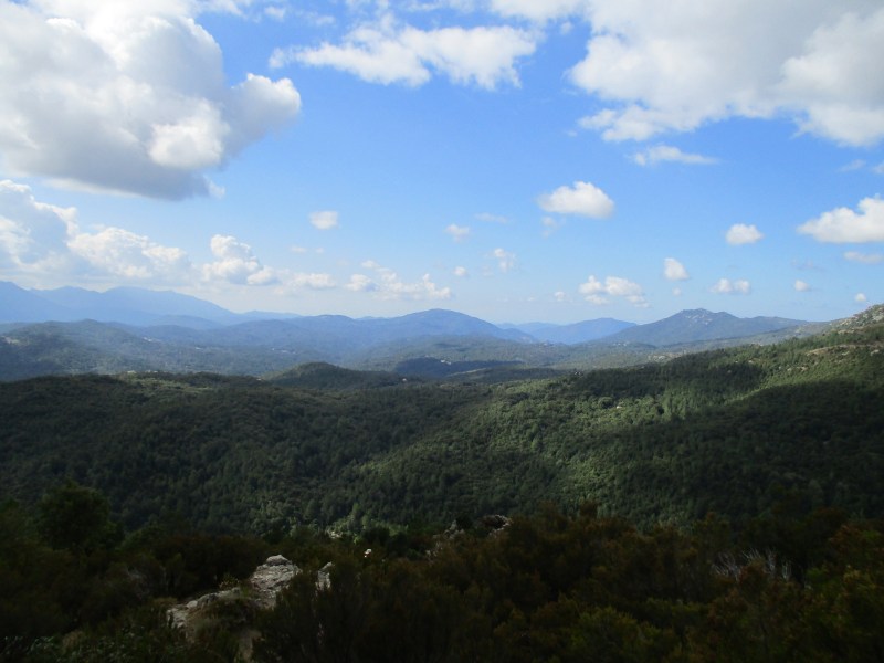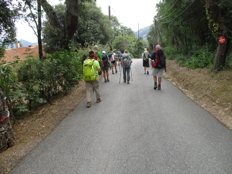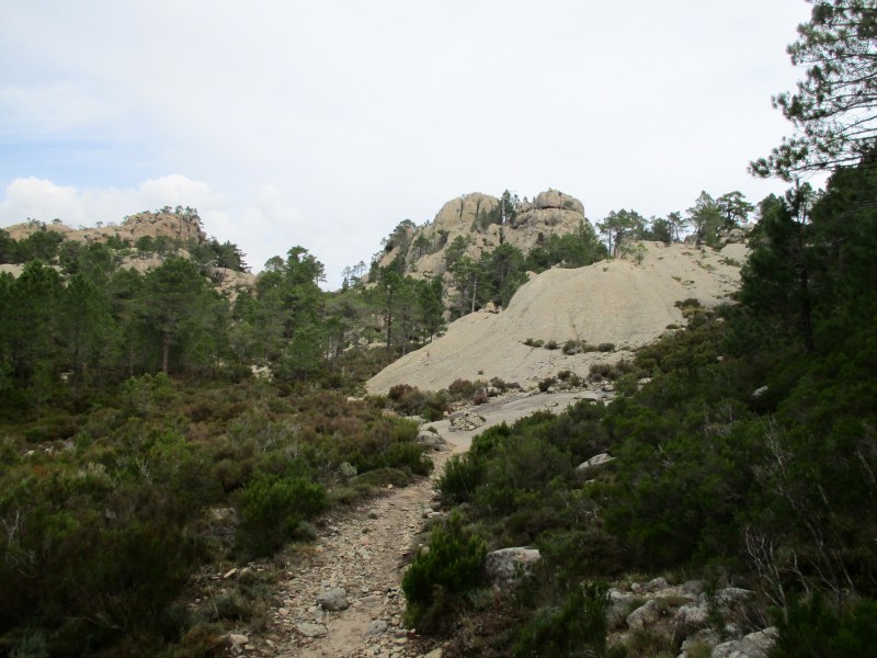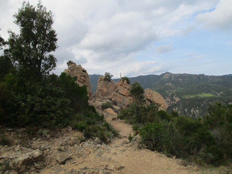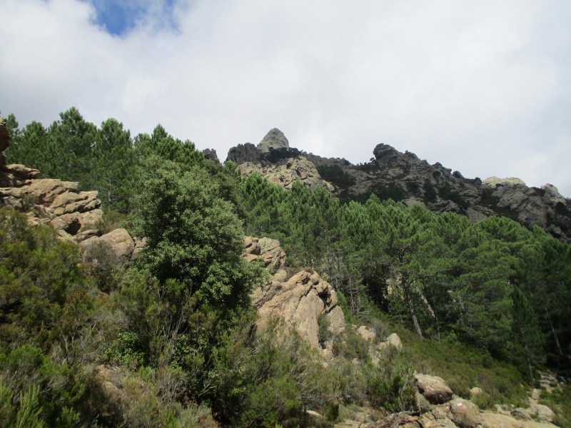 После отдыха тронулись в путь с новыми силами. Сегодня должен был быть подъём на 429 м, но пока мы его не чувствовали, шли по удобным тропинкам без заметных подъёмов и спусков. Навстречу стали часто попадаться гуляющие с маленькими рюкзаками. Район этот, называемый «горный массив Бавелла» или «корсиканские доломиты» считается самым красивым на Корсике и привлекает к себе море туристов.