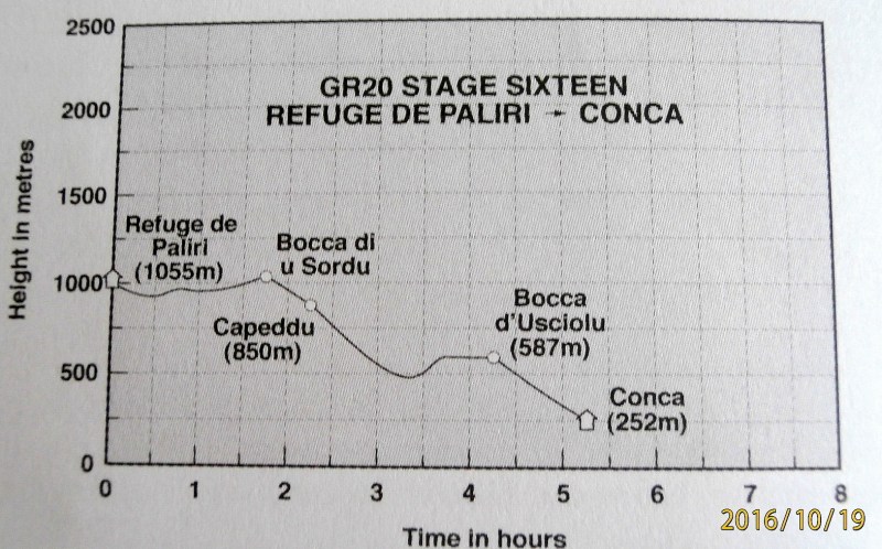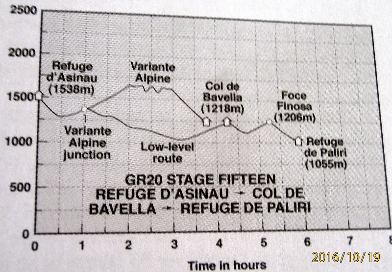 Рельеф трека GR 20 в 2006 году. Сейчас есть изменения в маршруте. Но характер тот-же,  местность-пила, подъёмы-спуски.