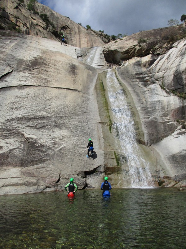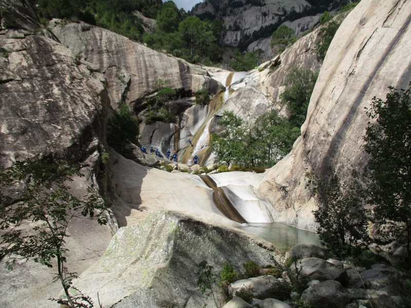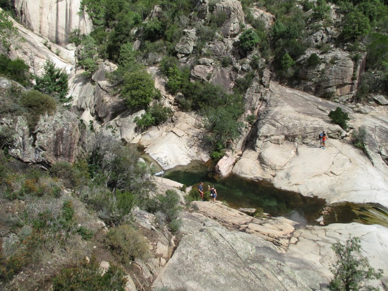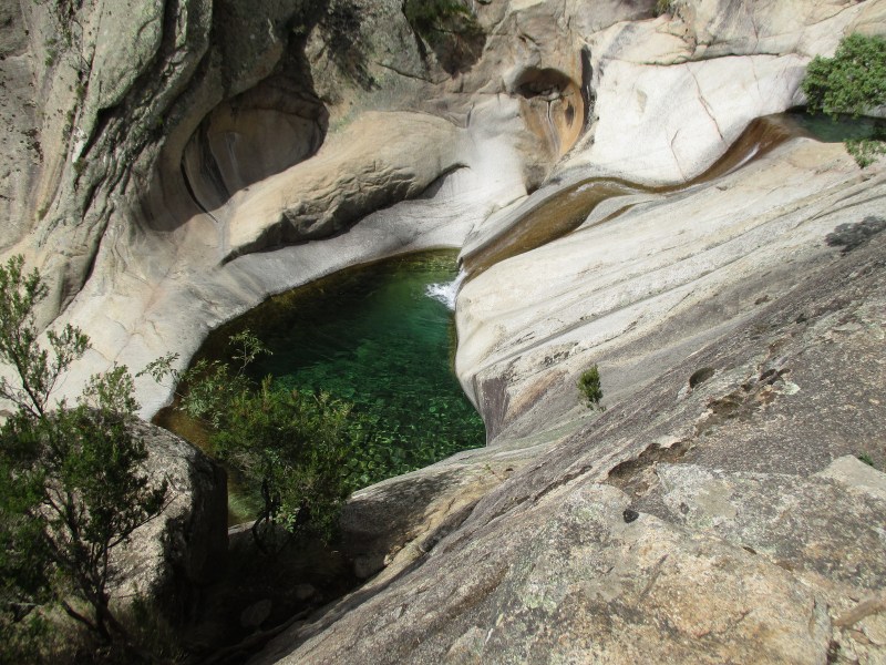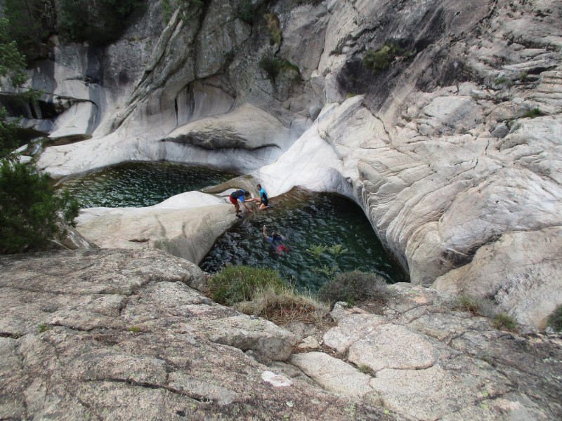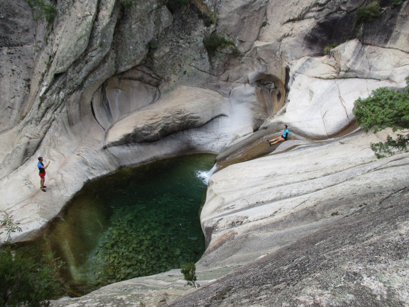 Возле водопада также была группа каньониров. Вскоре они, завершив спуск и съехав с горки в бассейн, ушли, и я осталась совсем одна. А вокруг была неземная красота. Я искупалась в глубоком бассейне. Вода была просто ледяная, градусов 12, гораздо холоднее, чем в душах на треке GR 20. Тело приятно горело после купания.