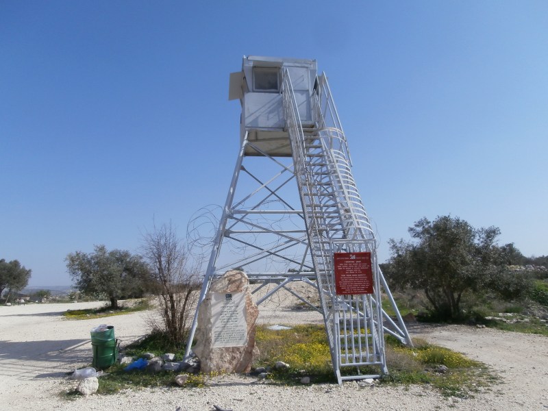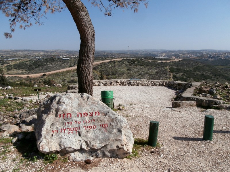 Далее поход проходил в соответствии с предварительным планом. Я немного вернулась назад, залезла безо всякой тропы в гору, а затем по зелёной джиповке пришла на холм,  где расположена смотровая площадка в память о Хези Сапире, погибшем в теракте в 1994 году.