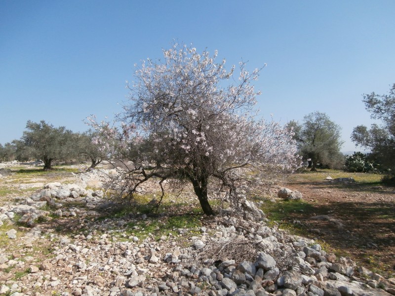А ещё на холме есть дом. В доме два входа и две комнаты. В каждой комнате по одному окну. Входы обращены на восток.  Не так давно в этом доме жила арабская семья. Но она была переселена в Джальджулию. А оливковые и миндальные деревья, что неподалеку, до сих пор принадлежат этой семье. Вот такие дела.