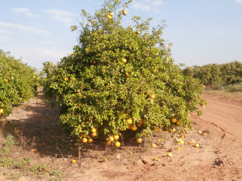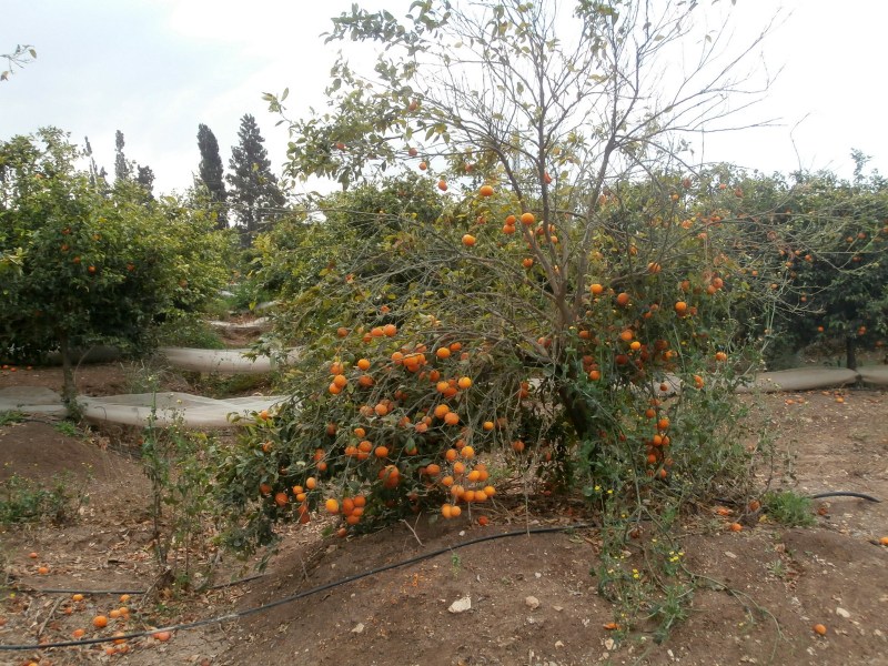 Вскоре начались цитрусовые сады. Мандарины. Их там видимо-невидимо. Деревья уже снова зацвели, а плоды так никто и не собрал…Хоть я в походах стараюсь не есть, всё же взяла несколько красивых мандаринок на случай внезапного приступа острого голода.