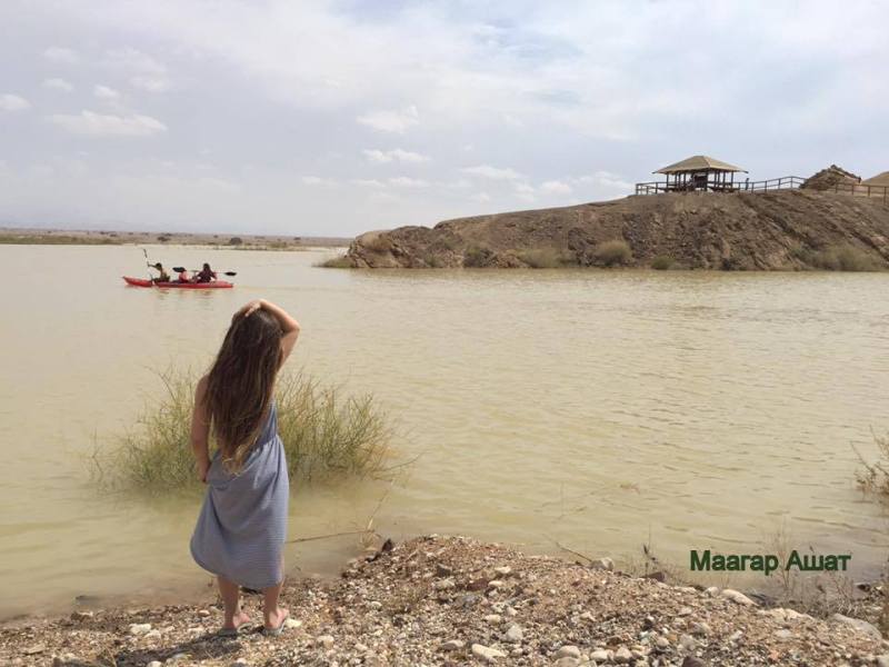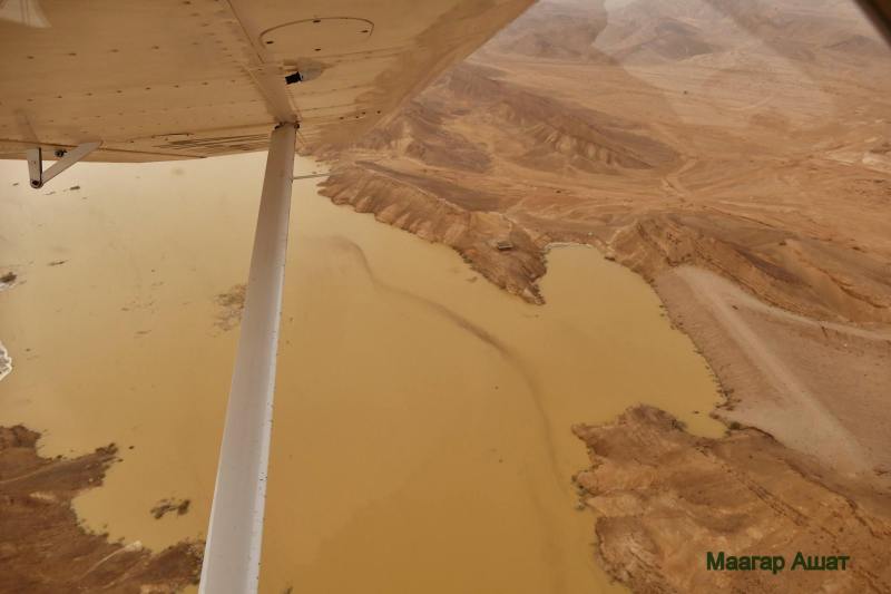 Маагар Ашат уникальное место. Всего неделю назад воды в нём не было. Но вот в середине апреля в южной части пустыни Негев произошло наводнение, и потекли нахалим. Нахаль Хайюн, один из них, заполнил маагар Ашат до краёв, и сначала он выглядел так: