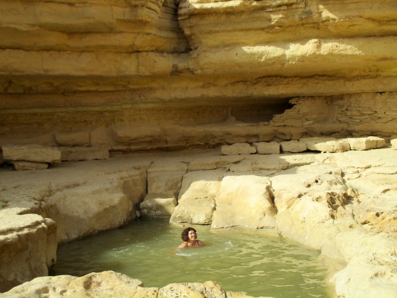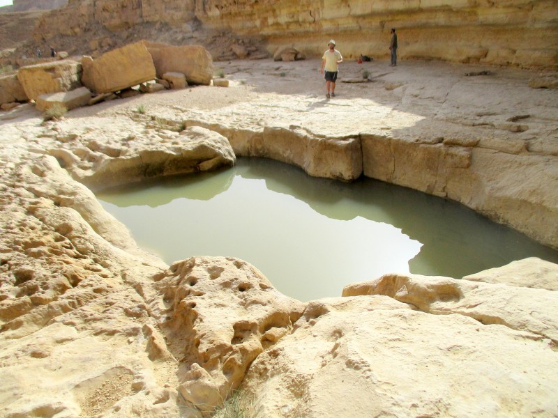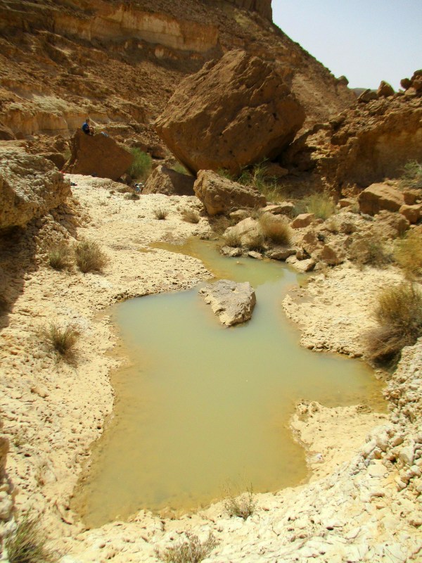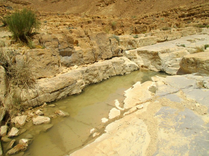 Поутру прежде всего мы сделали остановку в Махтеш Рамоне и посетили гев Елек. Я много слышала про этот гев, и вот наконец увидела его, да ещё и со свежей водичкой. Очередная свершившаяся мечта. Местечко симпатичное, но не могу сказать, что оно меня сразило наповал. Я даже немного разочаровалась — гев-то совсем маленький. А сколько шуму вокруг него!