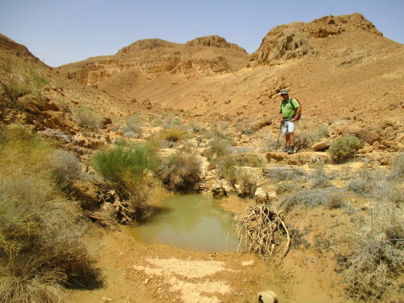 Первоначальный план 2-х дневного деньрожденьческого похода был изменён коренным образом и подстроен под недавний шитафон, точнее — под его последствия. А в последний момент и этот план пришлось корректировать, поскольку прогноз погоды на конец недели был неутешителен: ожидалась аномальная жара (+40), по нашему — хамсин. Гулять по пустыне в таких условиях можно было только в тех местах, где есть вода. И такие места я нашла, ведь я теперь пользуюсь «Амуд Ананом» и изучаю информацию, помещаемую в группе «רודפי שלום, שלווה ושיטפונות» в фейсбуке, и, благодаря этому, стала специалистом в составлении маршрутов (я не хвастаюсь, просто так оно и есть).