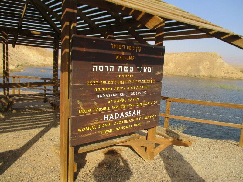 Поход получился недлинным — всего километров 10, и занял у нас 5 часов. И нам этого хватило, поскольку было нестерпимо жарко, и гуляние по пустыне уже не приносило должной радости. В такое пекло лучше всего находиться возле воды. Именно это мы и сделали — поехали к маагару (водохранилищу) Ашат близ поселения Паран.