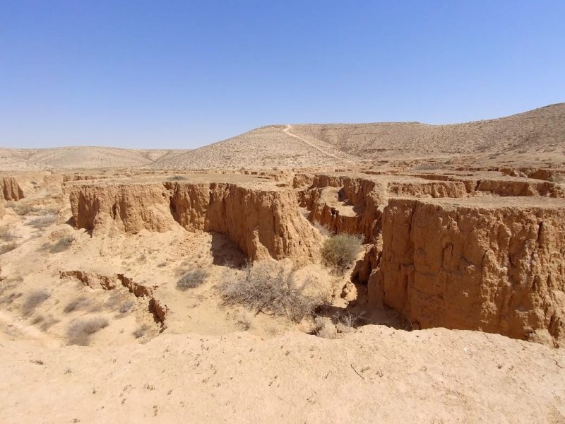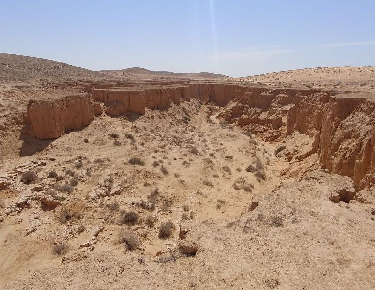 Далее наш путь лежал в сторону горы Керен. Наша армия — полноправная хозяйка в этом районе. Здесь на безграничных пространствах Негева постоянно проходят военные учения, и даже по выходным. И здесь, среди песков и холмов, запрятана уникальная природная достопримечательность, которую в народе называют Каньон Лёсс (קניון הלס). Приятель очень хотел мне его показать.