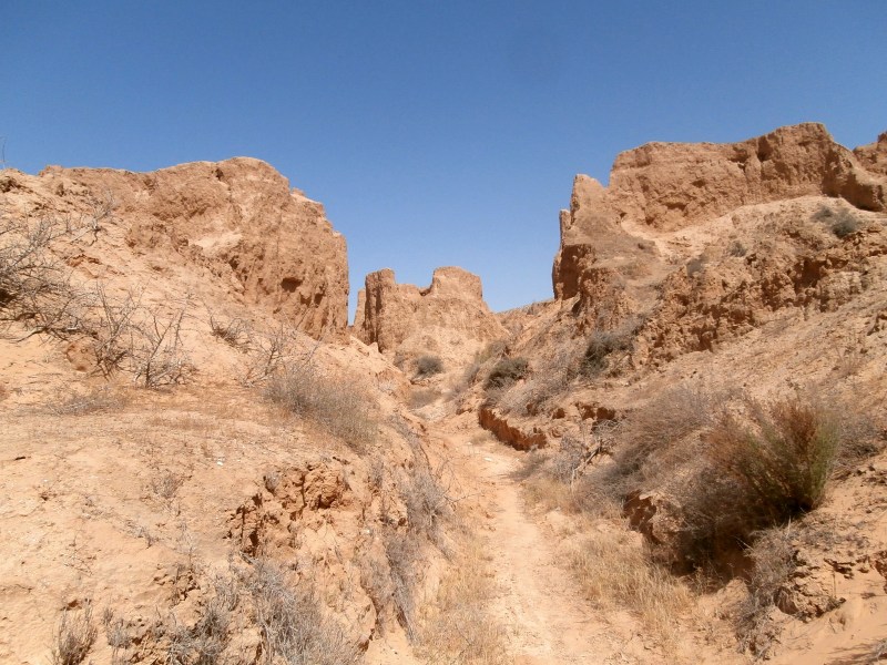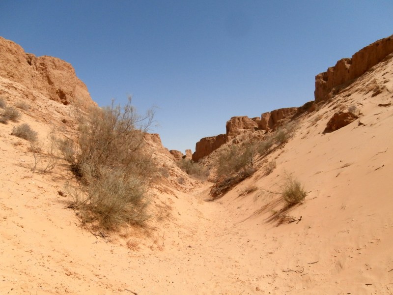 Вскоре я увидела то, ради чего мы сюда приехали. И зрелище действительно было уникальным и ни на что не похожим. Широкая долина была прорезана в разных направлениях глубокими трещинами. И это выглядело, как целая система каньонов со стенами высотой 5-7 метров. Почва в долине глинистая, рыжевато-коричневого цвета и называется «лёсс». Отсюда и название каньона.