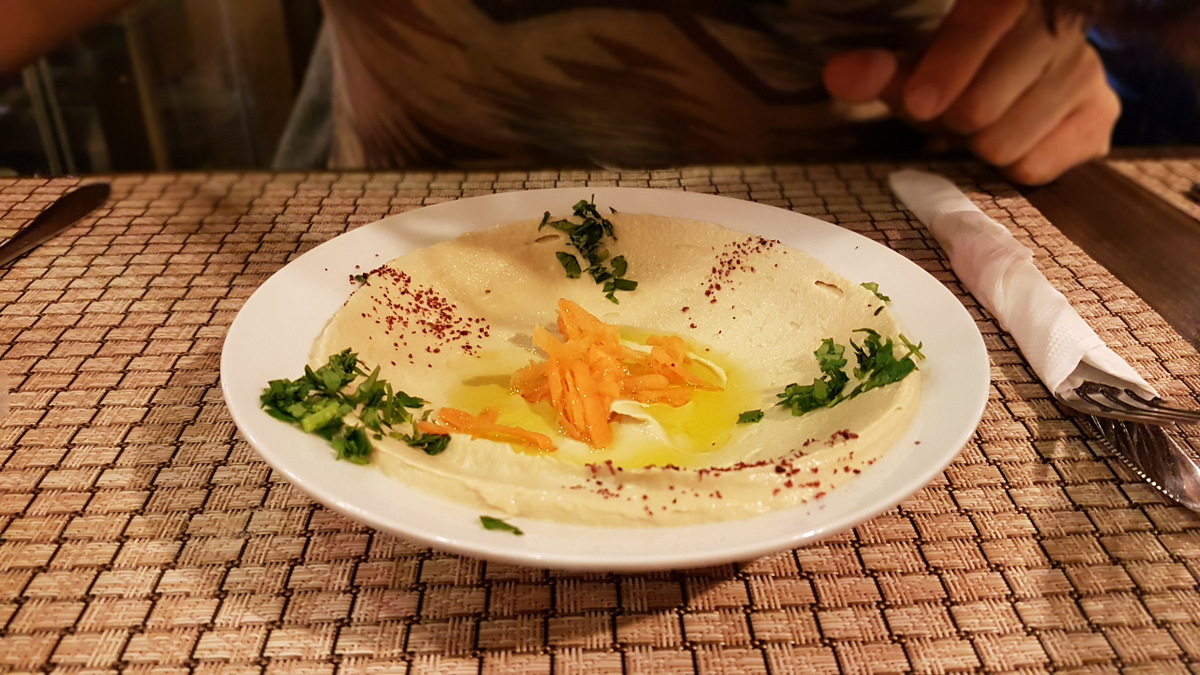 15 января, 2018 • 1200 × 675 • Зимняя Петра. Порция хумуса. Маловато. И вкус хуже, чем у нас в Израиле.