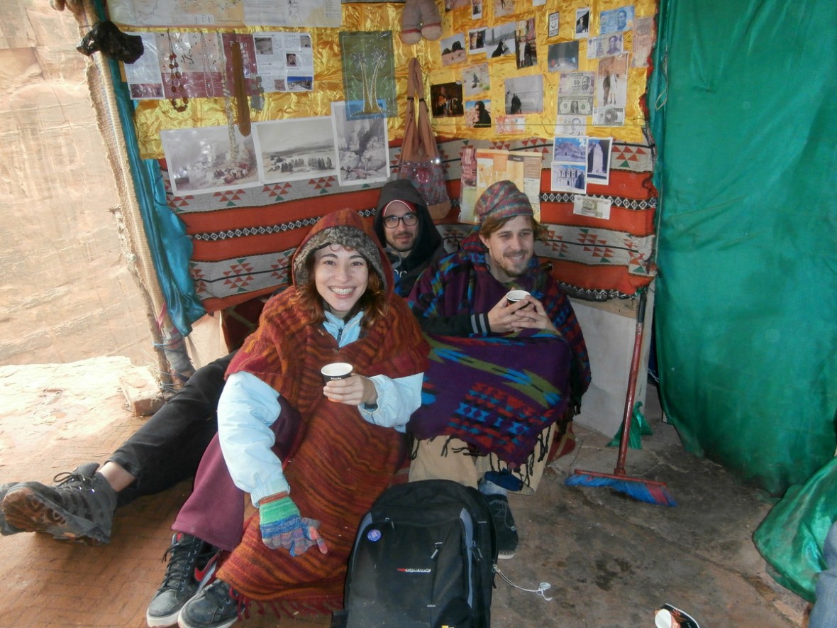 Отогреваемся на вершине горы с видом на Эль-Хазне.