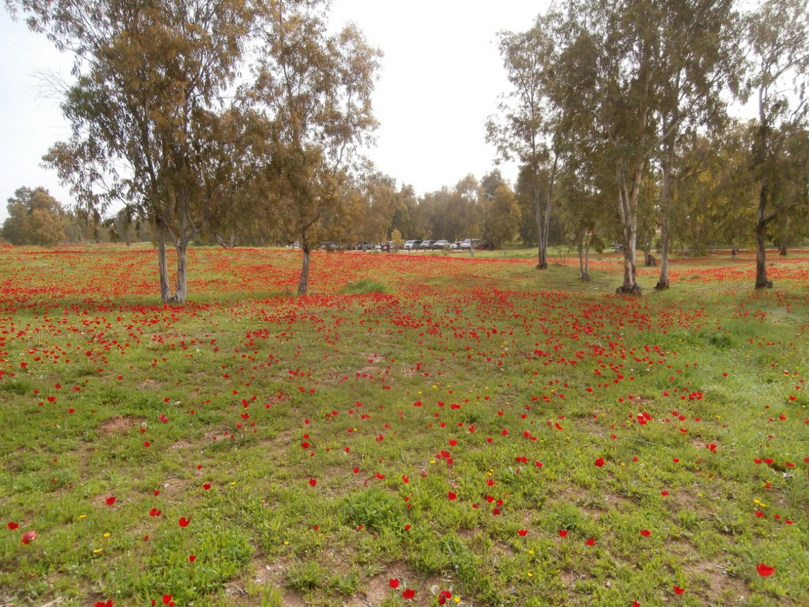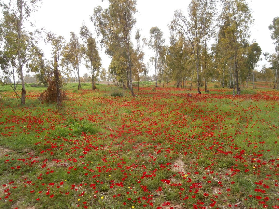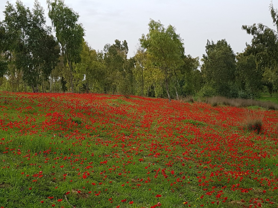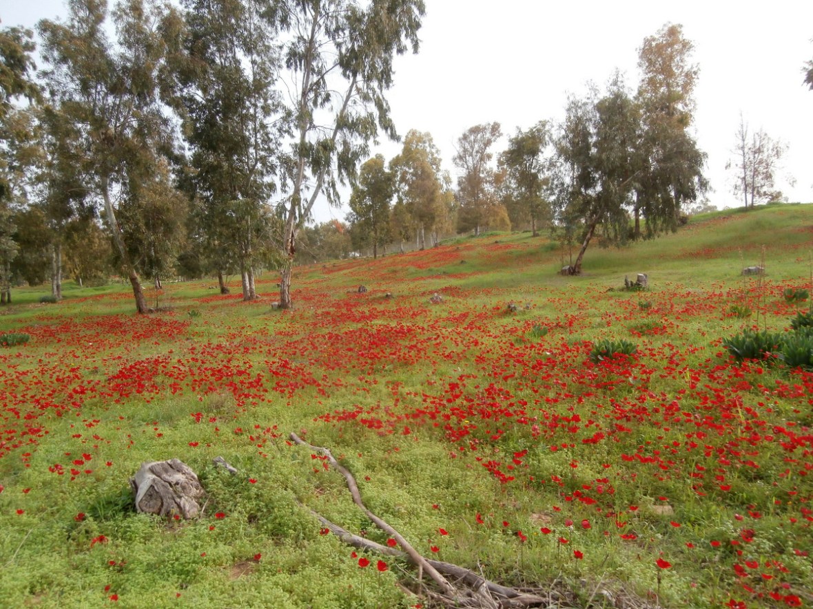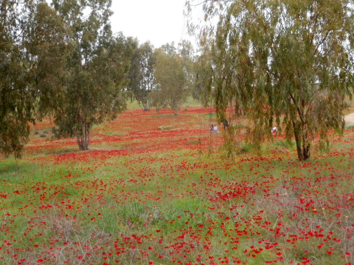 За 26 лет жизни в Израиле, я ни разу не видела красных ковров из цветущих анемонов. Слышала много, но не видела. Полянки цветущих каланиёт тут и там встречала, но чтобы огромные, кажущиеся бесконечными, площади, горящие красным цветом — такого наяву не видела, только на фото.