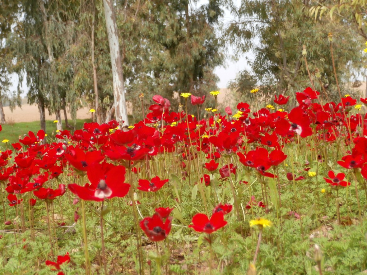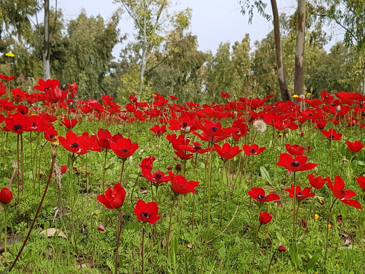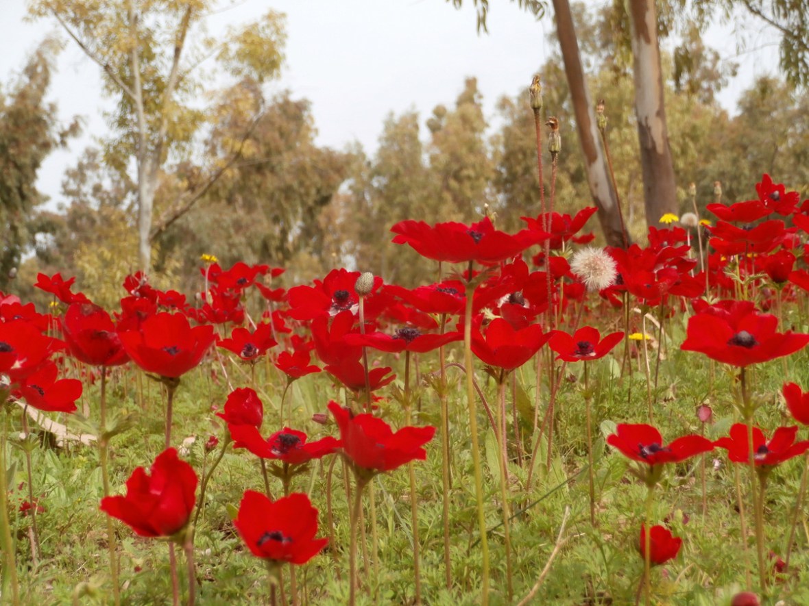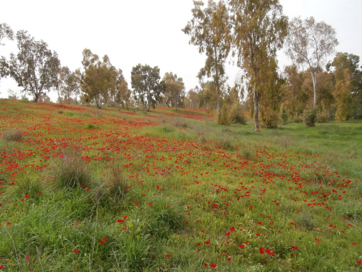 За 26 лет жизни в Израиле, я ни разу не видела красных ковров из цветущих анемонов. Слышала много, но не видела. Полянки цветущих каланиёт тут и там встречала, но чтобы огромные, кажущиеся бесконечными, площади, горящие красным цветом — такого наяву не видела, только на фото.