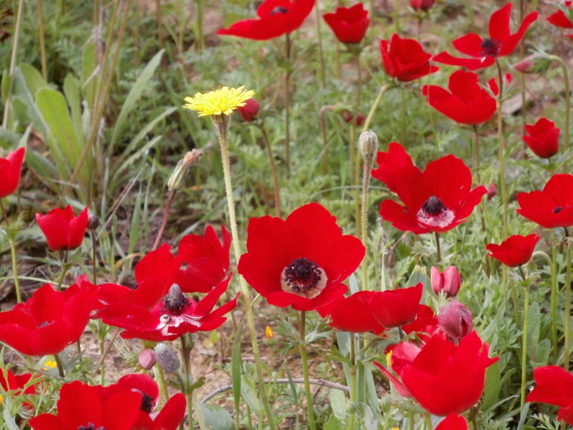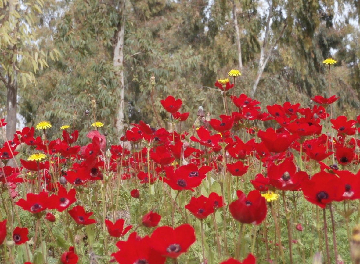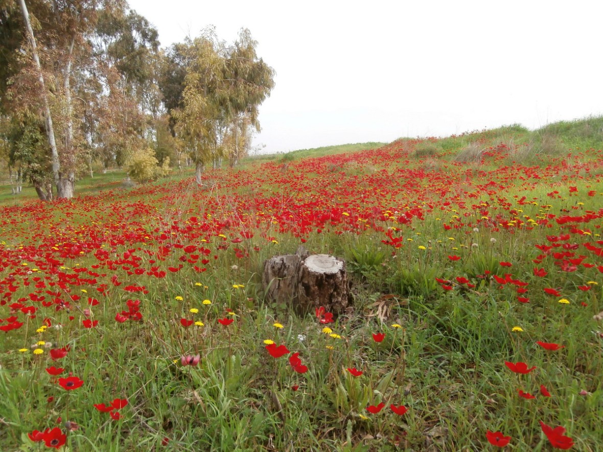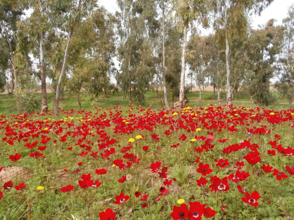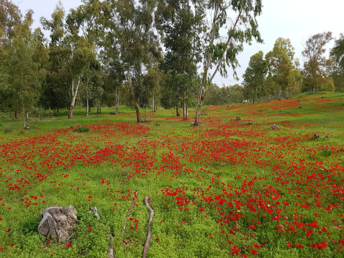 За 26 лет жизни в Израиле, я ни разу не видела красных ковров из цветущих анемонов. Слышала много, но не видела. Полянки цветущих каланиёт тут и там встречала, но чтобы огромные, кажущиеся бесконечными, площади, горящие красным цветом — такого наяву не видела, только на фото.