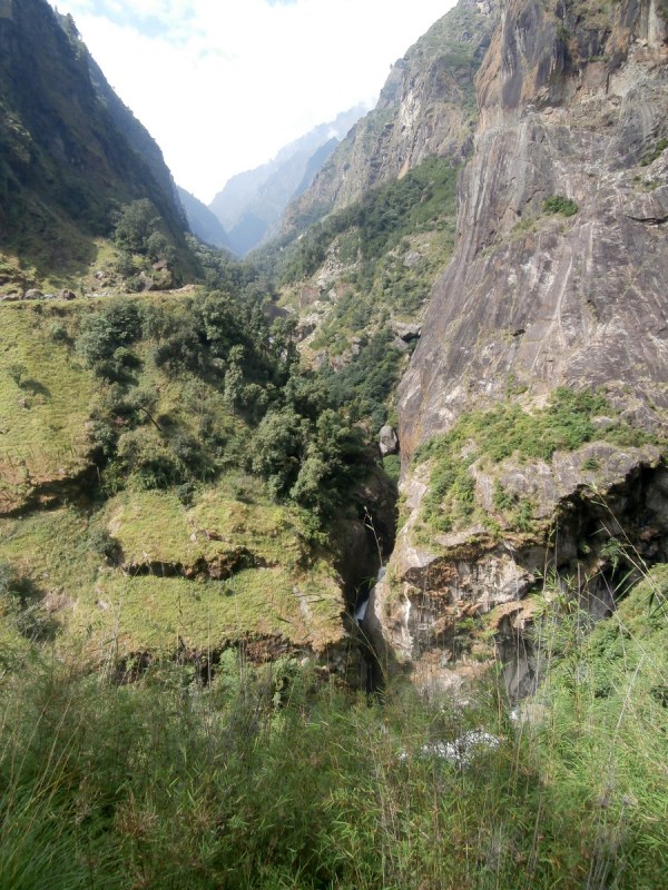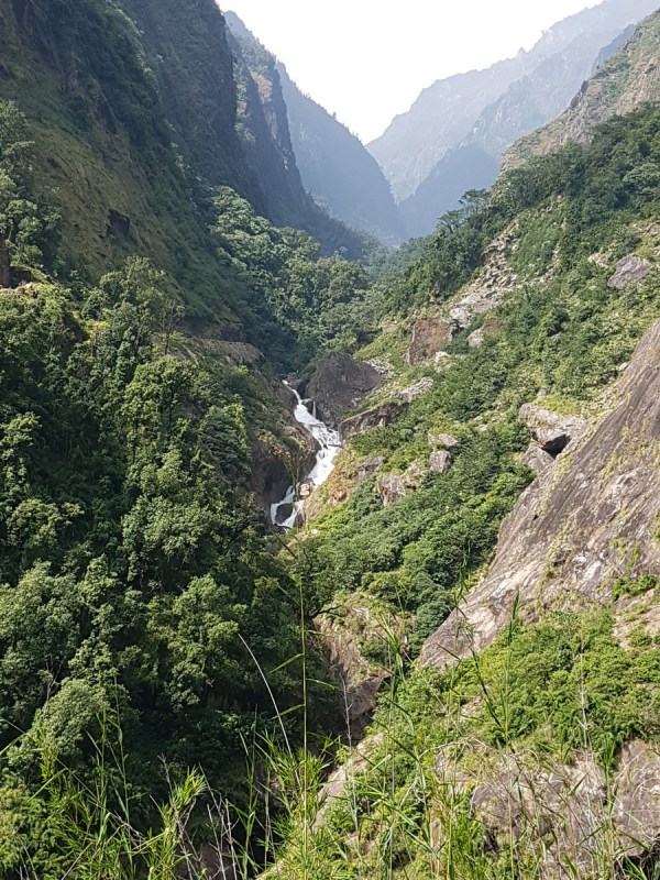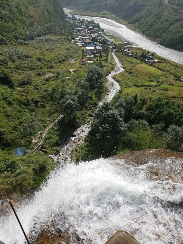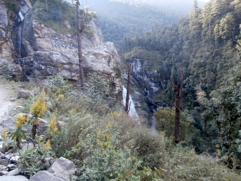 Прошла по джиповке, миновала поворот на Тиманг и вдруг услышала сильный шум. Мощнейший водопад падал с высокого склона в ущелье. Я была восхищена. Это был сюрприз.