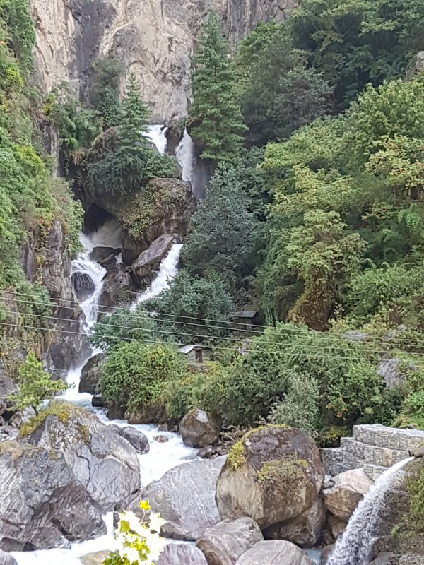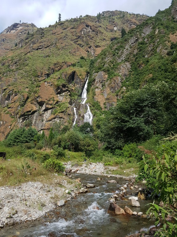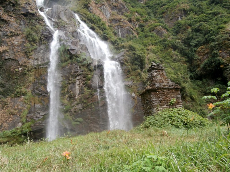 У подножья водопада. И древняя маленькая ступа (чортен). Как это душевно.