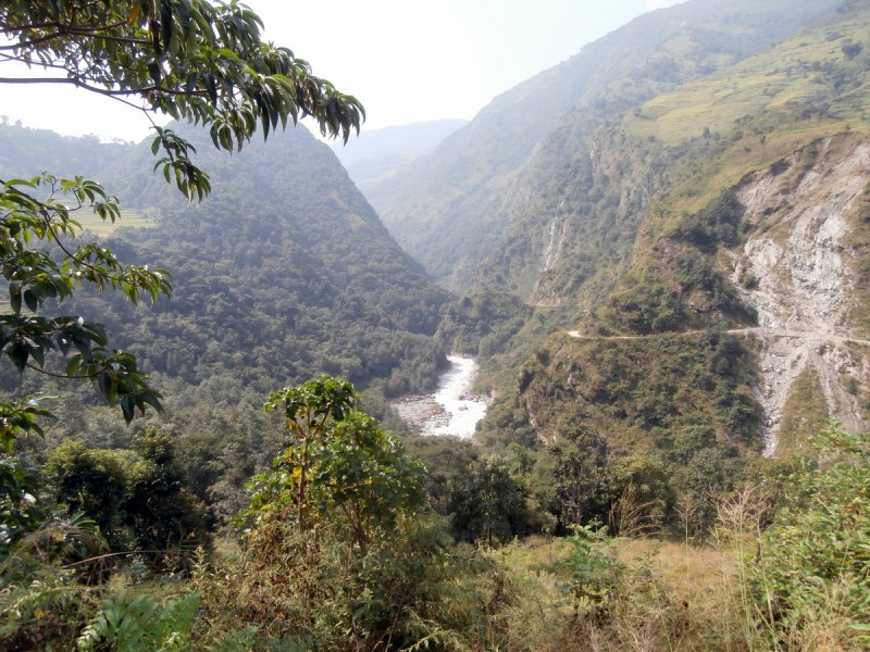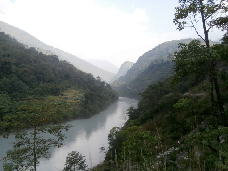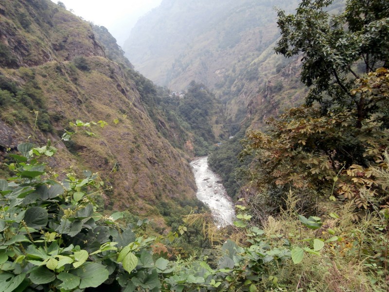 Вид на ущелье Марсъянди с высоты (около Тиманга).