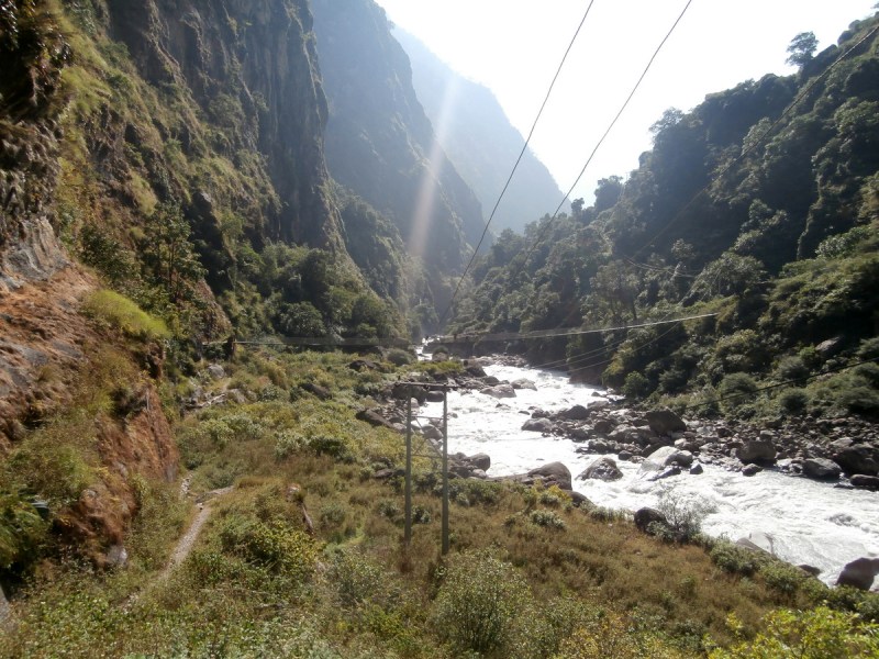 После Thanchowk (2400) открылся потрясающий вид на Аннапурну II. Лучше, чем вчера. Только электрические провода мешают любоваться и фотографировать. Цивилизация. Куда же без неё…