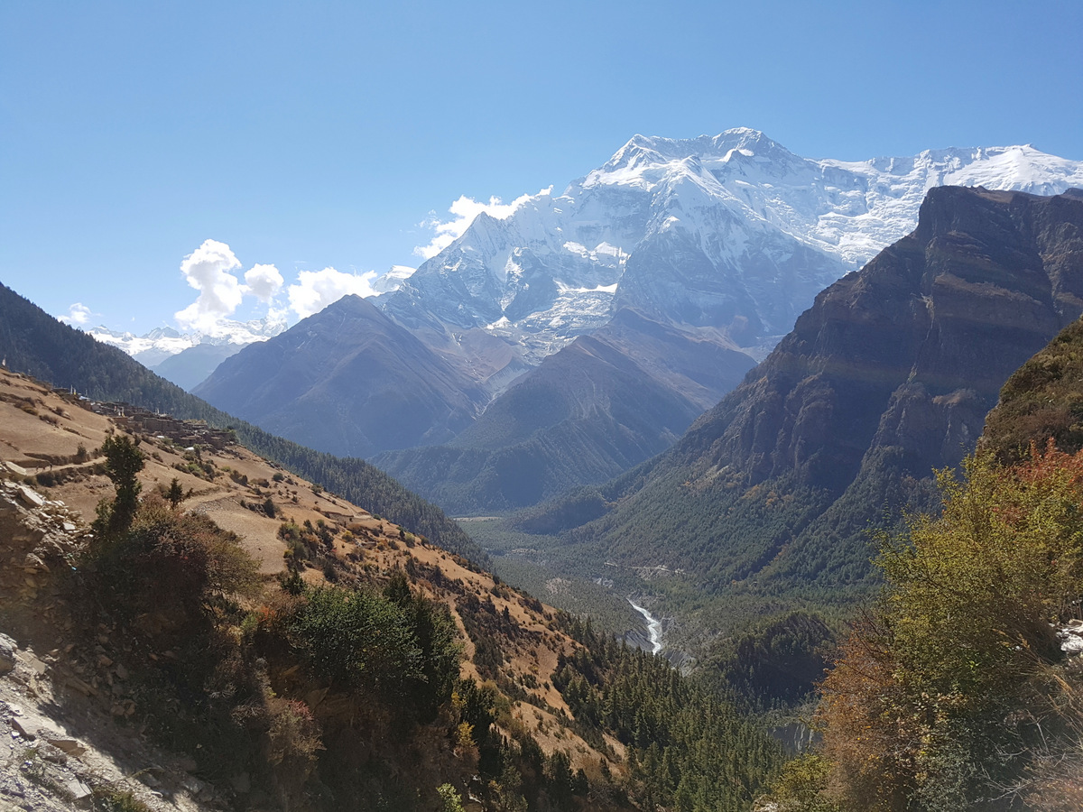 3 марта, 2018 • 1200 × 900 • Вокруг Аннапурны, Непал. Трек мечты, пройденный на пределе возможностей. Часть вторая: Чаме — озеро Тиличо — Як Кхарка. Взгляд назад. Аннапурна II во всей своей красе. Слева виднеются домики Гъяры.