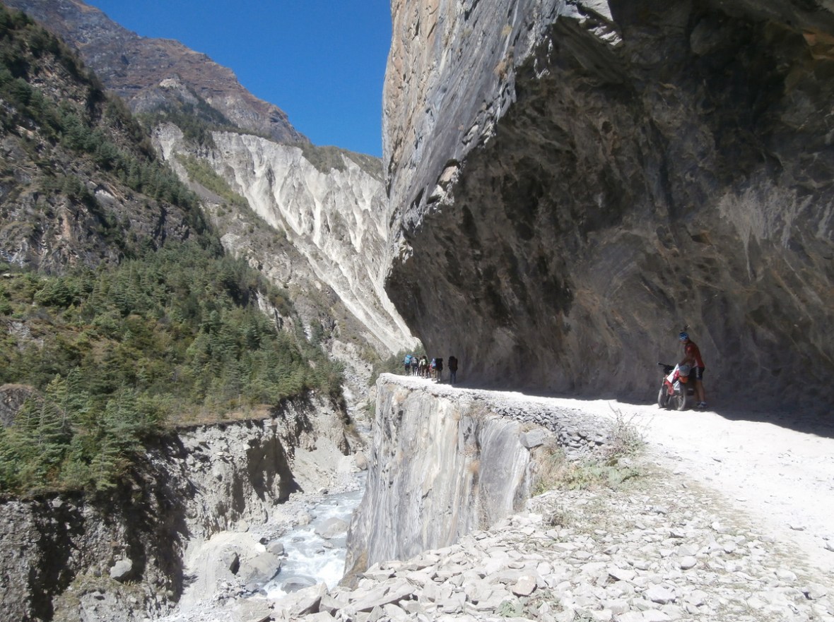 2 марта, 2018 • 1200 × 896 • Вокруг Аннапурны, Непал. Трек мечты, пройденный на пределе возможностей. Часть вторая: Чаме — озеро Тиличо — Як Кхарка. Дорога вырублена прямо в скале.