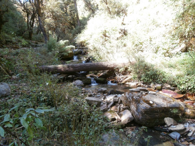 И точно. Вскоре мы подошли к мостику. Я спросила Харку : «Почему?!» А он так наивно отвечает, что по тропе нам идти до Татопани три часа, а по джиповке — всего два. Я ему резонно заявляю, что дескать, это не годится, чтобы он принимал решения, не спросив меня. Я не желаю никоим образом идти по джиповке и глотать пыль. Надо идти три часа? Пройду и три, и четыре, но по нормальной лесной тропе.