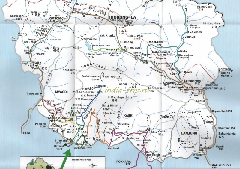 Общая карта трека вокруг Аннапурны.