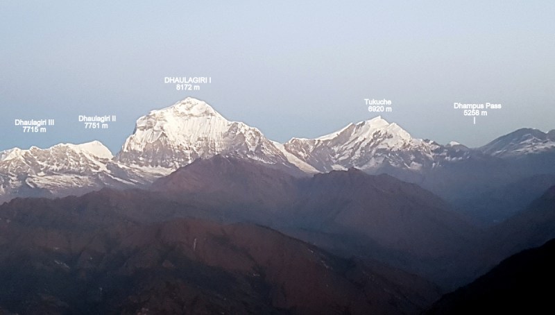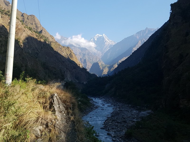 Утро в Татопани. Выходим в путь. Гора Нилгири, как на ладони.