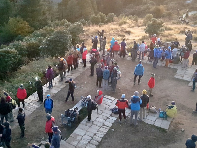 Сегодняшний маршрут — это один сплошной подъём. Большей частью по тропе, не по джиповке. Немало крутых длинных участков. Иногда казалось, что этот подъём никогда не кончится. Часто шли по ступенькам. Это только начало, в последующие дни ступенек будет очень много.