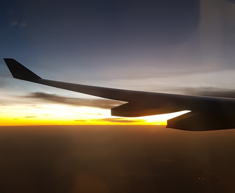 Из трекеров только я да пара молодых израильтян. Полёт прошёл замечательно. Наблюдала великолепный закат над Аравийским полуостровом.
