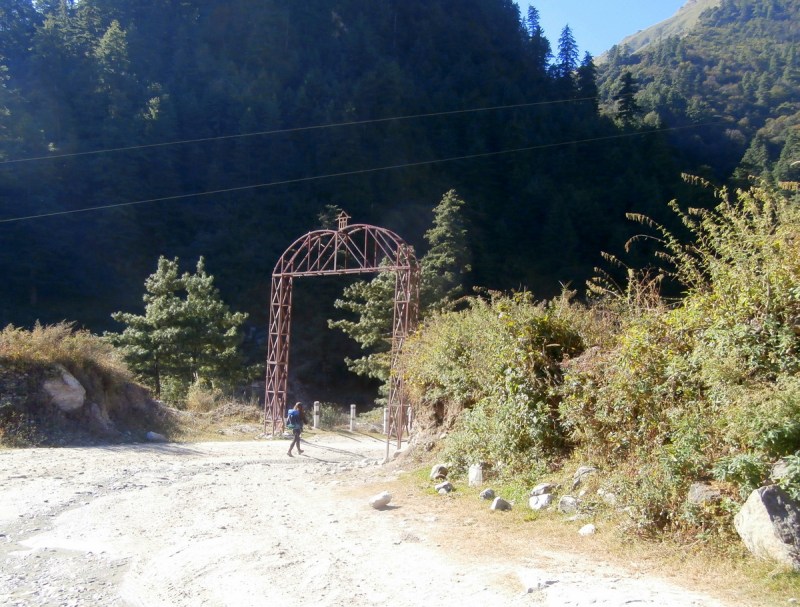 И точно. Вскоре мы подошли к мостику. Я спросила Харку : «Почему?!» А он так наивно отвечает, что по тропе нам идти до Татопани три часа, а по джиповке — всего два. Я ему резонно заявляю, что дескать, это не годится, чтобы он принимал решения, не спросив меня. Я не желаю никоим образом идти по джиповке и глотать пыль. Надо идти три часа? Пройду и три, и четыре, но по нормальной лесной тропе.