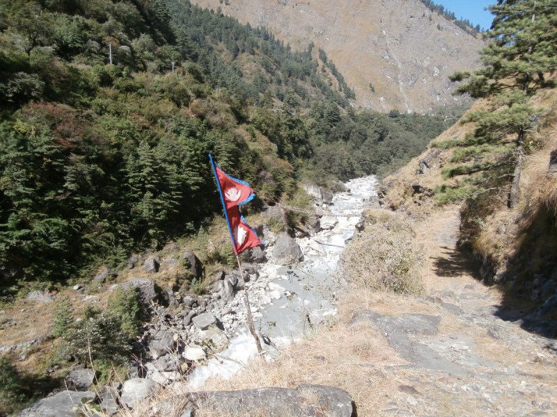 Я знала, что после Гхасы есть треккерская тропа по левой стороне ущелья. Мой портер сказал, что знает эту тропу, и мы по ней, разумеется, пойдём.