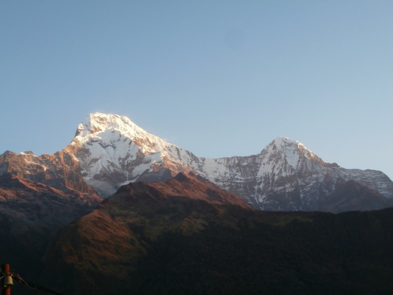 Я сразу отказалась от такого варианта. Вчера, после четырёх напряжённых дней я чувствовала себя не иначе, как: «укатали Сивку крутые горки». Я бы, конечно, смогла пройти от Татопани до Горепани за один день, но зачем так напрягать свой организм? Тем более, у меня в запасе достаточно дней. Выигрыш одного дня мне не даст ровным счётом ничего. Перспектива дополнительного дня в Катманду или Покхаре меня не прельщала, а в базовый лагерь Аннапурны (ABC) я всё равно не успеваю. Да и честно — мне хватит. Сделаю «Кольцо Аннапурны» полностью, и это будет здорово.