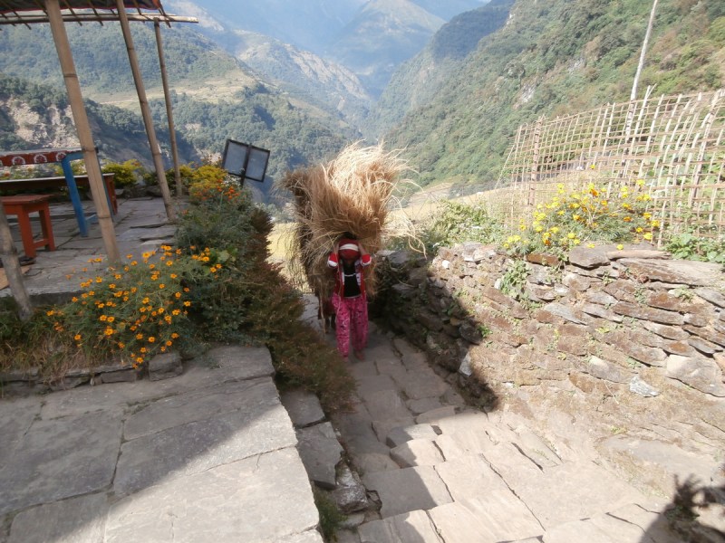 Многие туристы из Татопани идут прямиком в Горепани и на следующий день на рассвете поднимаются на Poon Hill. Но это — убийственный переход, по крайней мере для меня, учитывая, что я ещё не совсем здорова. 15 километров пути с перепадом высот 1690 метров.